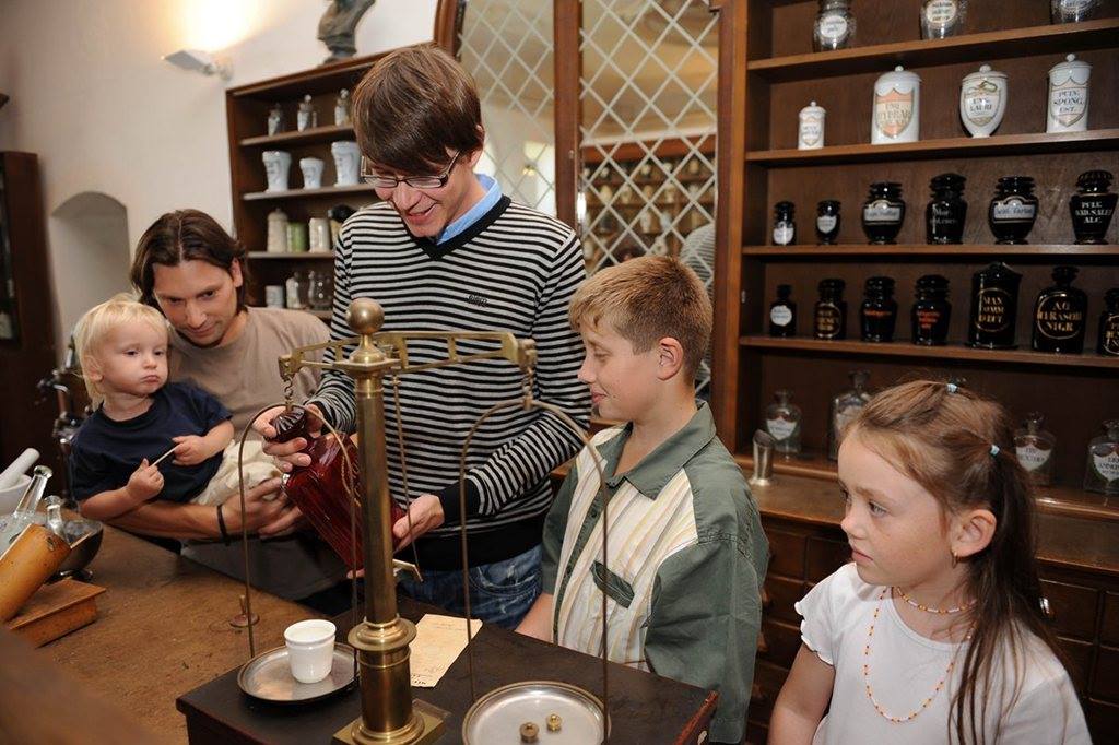 Expozice Českého farmaceutického muzea zvaná „Kouzlo apatyky“ představuje vývoj lékáren od baroka do 20. století, a další oblasti farmacie jako výzkum, školství nebo vojenskou farmacii. Vystaveny jsou soubory léčiv rostlinných, minerálních a chemických i živočišných, jako jsou švábi, stonožky, mumie a jiné. Svou výtvarnou krásou zapůsobí hmoždíře, reliéfy, obrazy a lékárenské nádoby. Návštěvník si může vyzkoušet roli lékárníka a rozmělňovat léčiva v třence, vyrábět tablety či vylisovat čípky, anebo ve výdejním boxu číst recepty, vydávat léky a podávat rady o jejich užívání.