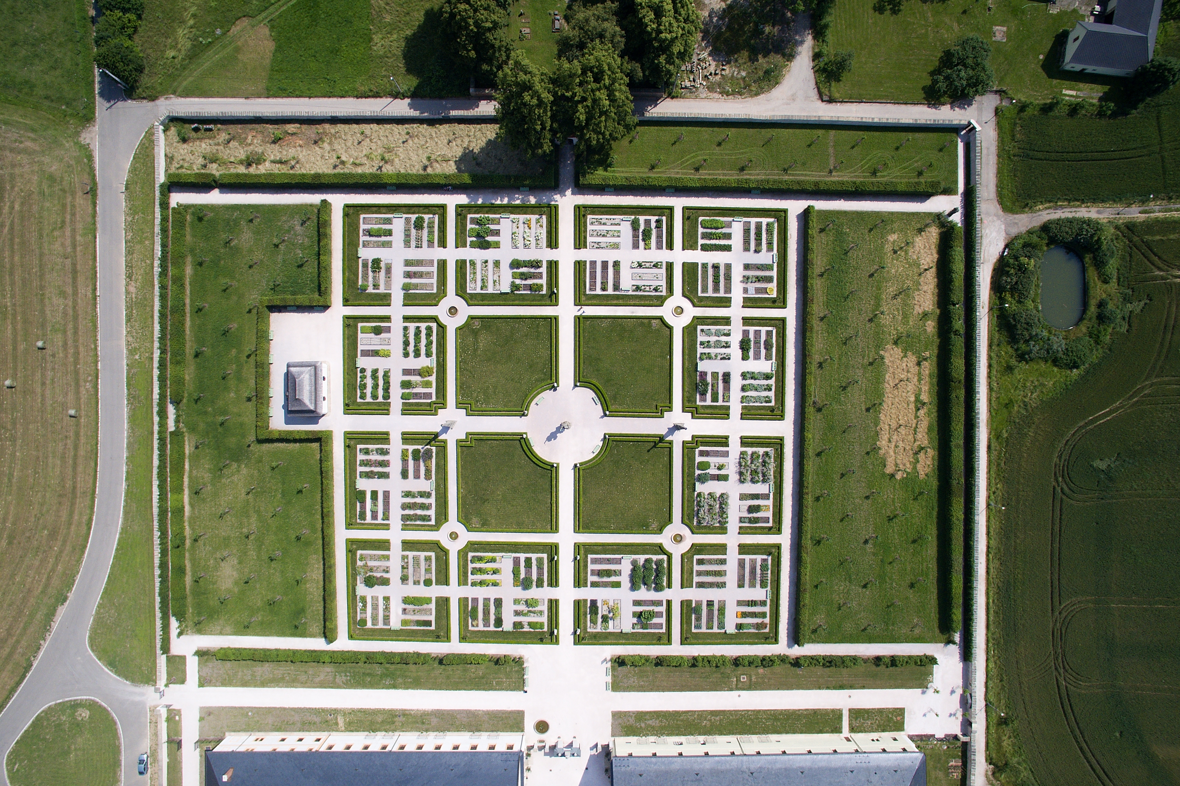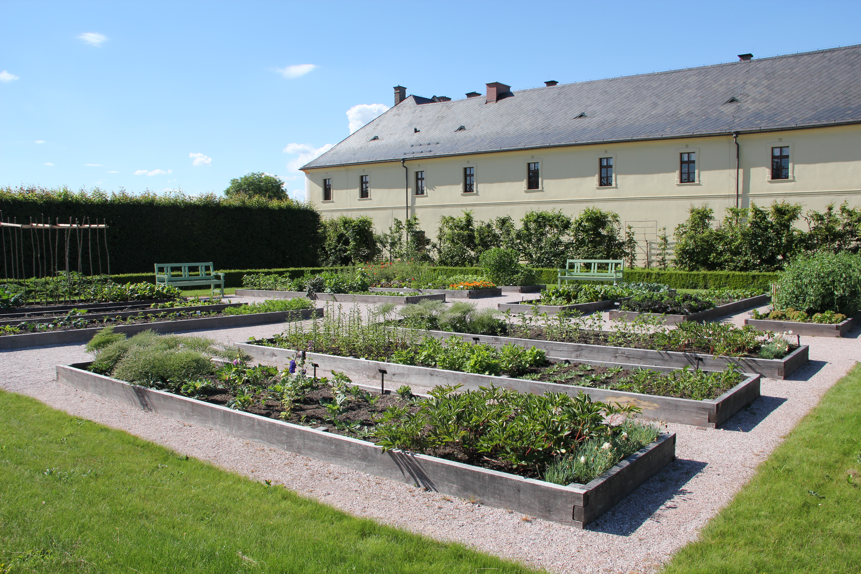 V současné době je dvanáct ze šestnácti čtverců osázeno mnoha druhy rozličných bylin a léčivek, což čítá dohromady 144 záhonů. Lepšímu vzhledu zahrady napomohla i rekonstrukce sušárny a demolice zastaralého nevzhledného skleníku. Nové moderní zázemí nyní mají naši zahradníci a zahradnice vedle bývalé sýpky u hospitálu (u restaurace). V tomto skleníku zdárně pěstují i citrusy a jiné exotické druhy rostlin. Navíc zde přes zimu nalézají útočiště karásci z venkovních nádrží na vodu (piscin).
