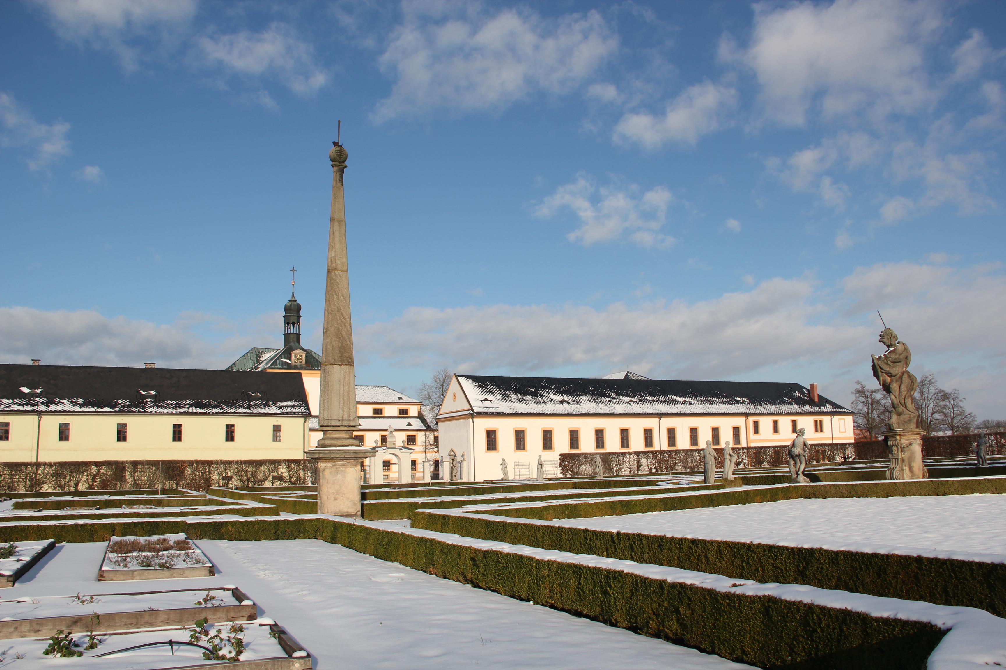 Dominantou zahrady je socha velkého Křesťanského bojovníka z dílny Matyáše Bernarda Brauna vytvořená roku 1732. Socha původně stávala na západním okraji Nového lesa, a bojovník měl být výstrahou žirečským jezuitům, se kterými F. A. Špork vedl dlouhý spor o vybudování Křížové cesty od Žirče k Betlému.