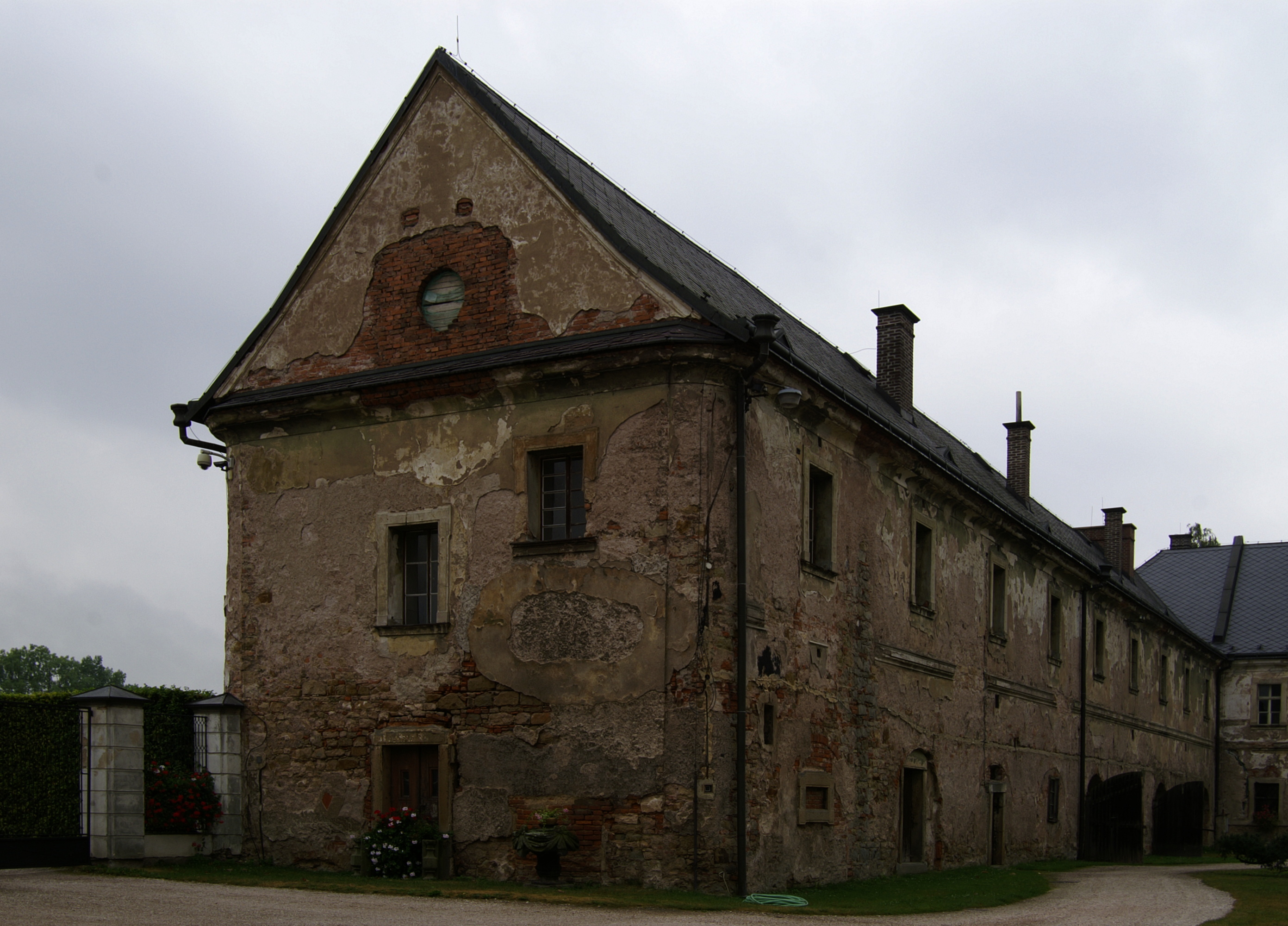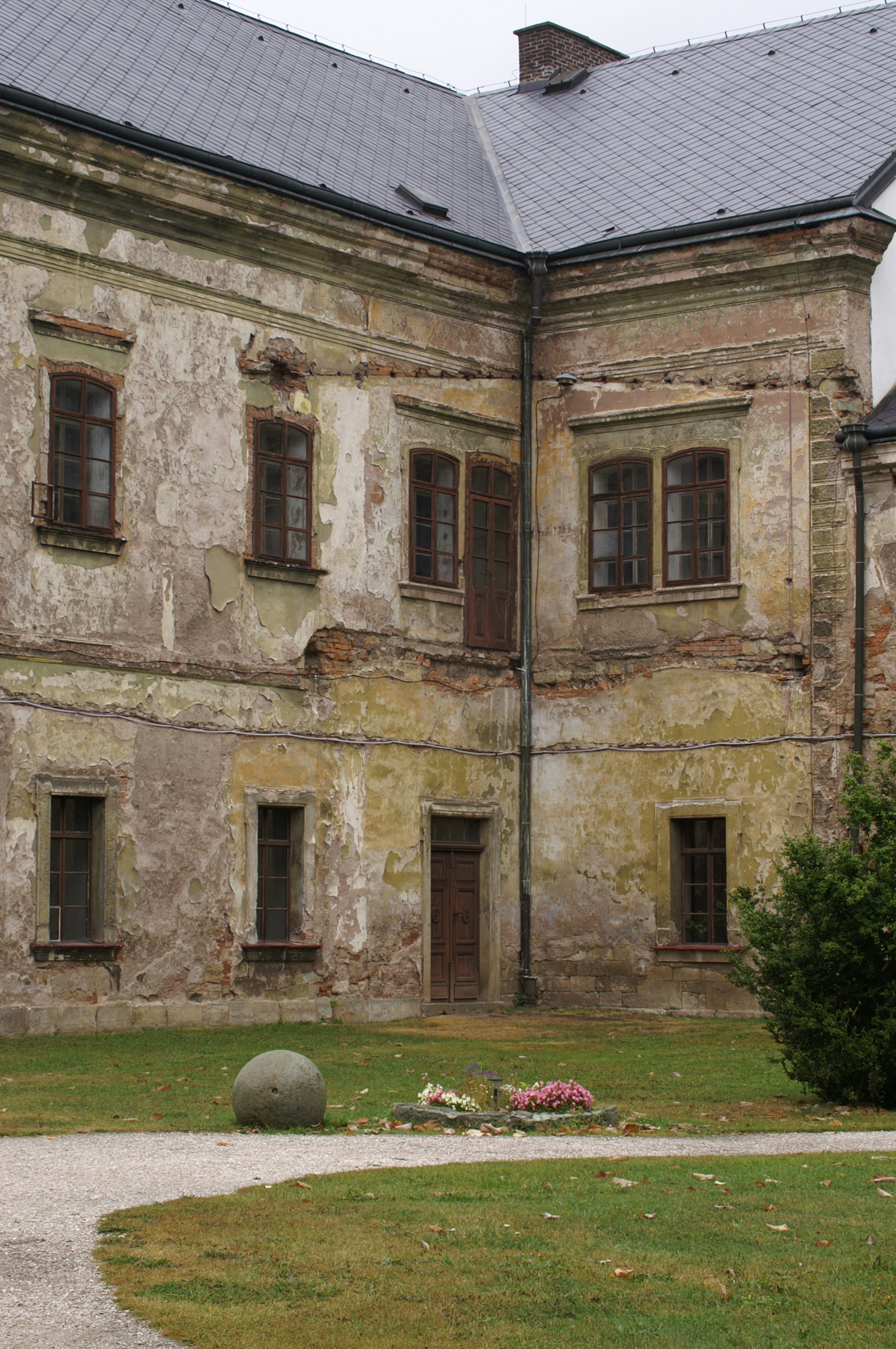 Na začátku projektu byly v nejhorším stavebním a technickém stavu prostory hospodářského jihozápadního křídla. V nesrovnatelně lepším stavu se nacházely prostory severovýchodního rokokového křídla, obývané po válce krajským archivem. Podobná situace panovala i v západním provozním křídle, kde proběhly poslední velké úpravy v letech 2001 – 2002 za účelem zlepšení průvodcovského a zaměstnaneckého zázemí objektu. Největším minusem celé budovy byl ovšem celkový stav inženýrských sítí, zejména kanalizace. Svou úpravu si vyžádalo i nádvoří, které připomínalo jakýsi polotovar mezi hospodářským dvorem a předpolím zámeckého parku. Hodnotnou součástí areálu je i sýpka při východní straně objektu. Vzezření jejích interiérů ale výrazně uškodila úprava na stravovací a ubytovací zařízení v 70. a 80. letech 20. století. Poslední z obnovených lokalit hospitálu je zahrada při jižním okraji areálu, ohraničená kamennou zdí. Půdorysně je rozdělena na šestnáct čtverců, které v minulosti sloužily k pěstování bylin, ovšem po válce byly v souvislosti s uzavřením zdejší lékárny zatravněny.