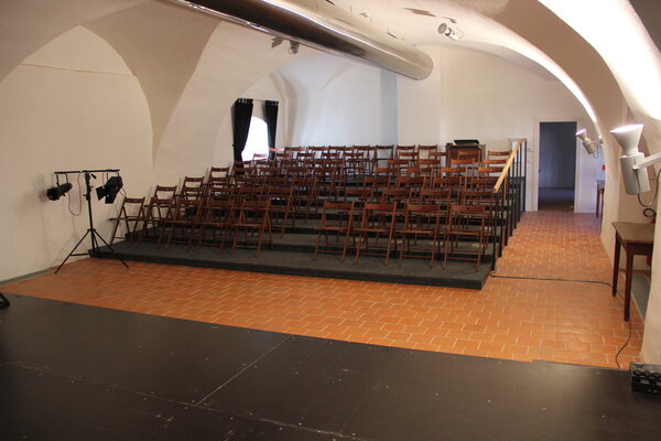 Na nádvoří hospitálu najdete mimo jiné také divadlo o kapacitě přibližně 60 osob. Nachází se v něm jeviště, stupňovité hlediště a dvě malé šatny. V prostoru můžete uspořádat například přednášku, seminář, školení, představení nebo jinou akci.