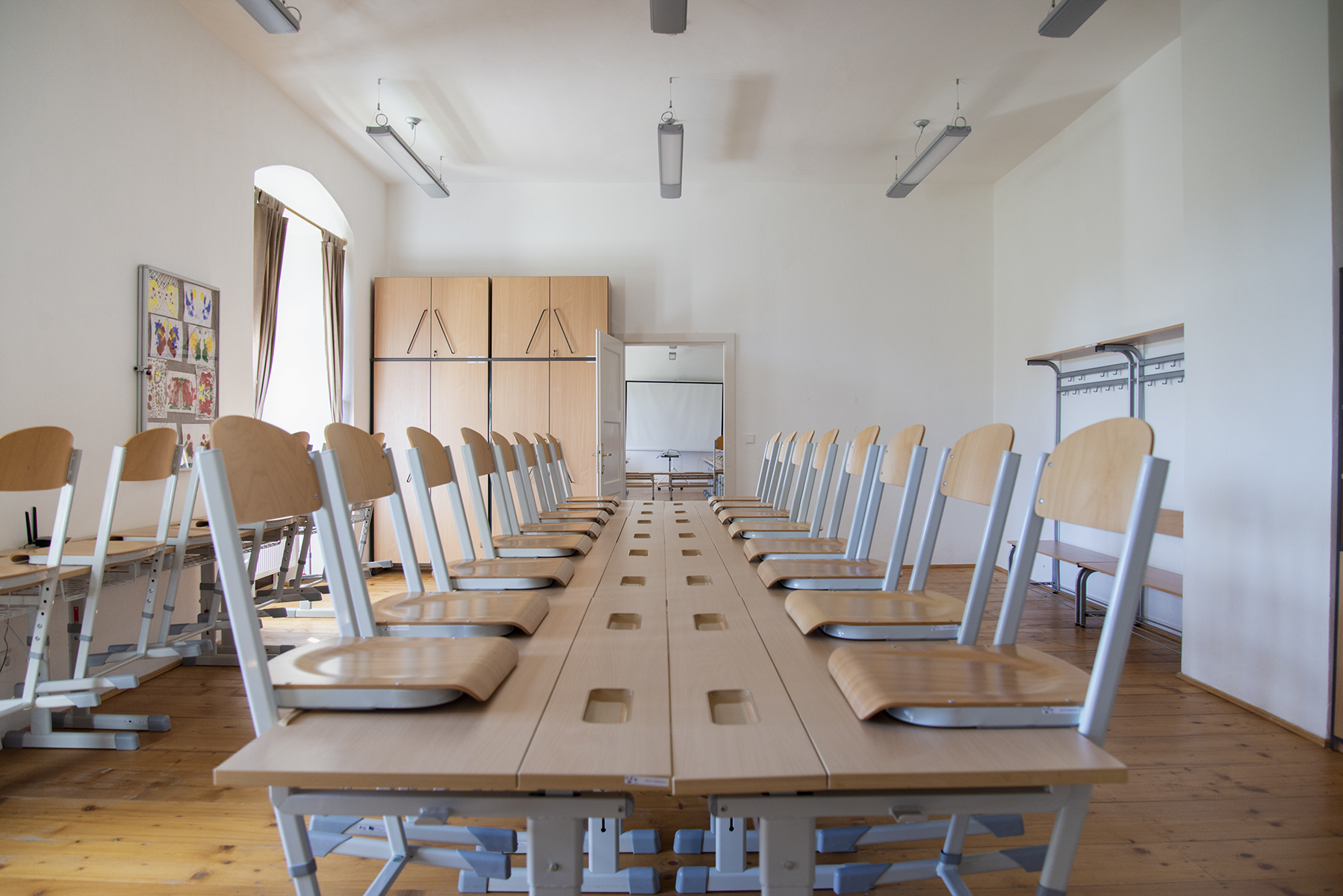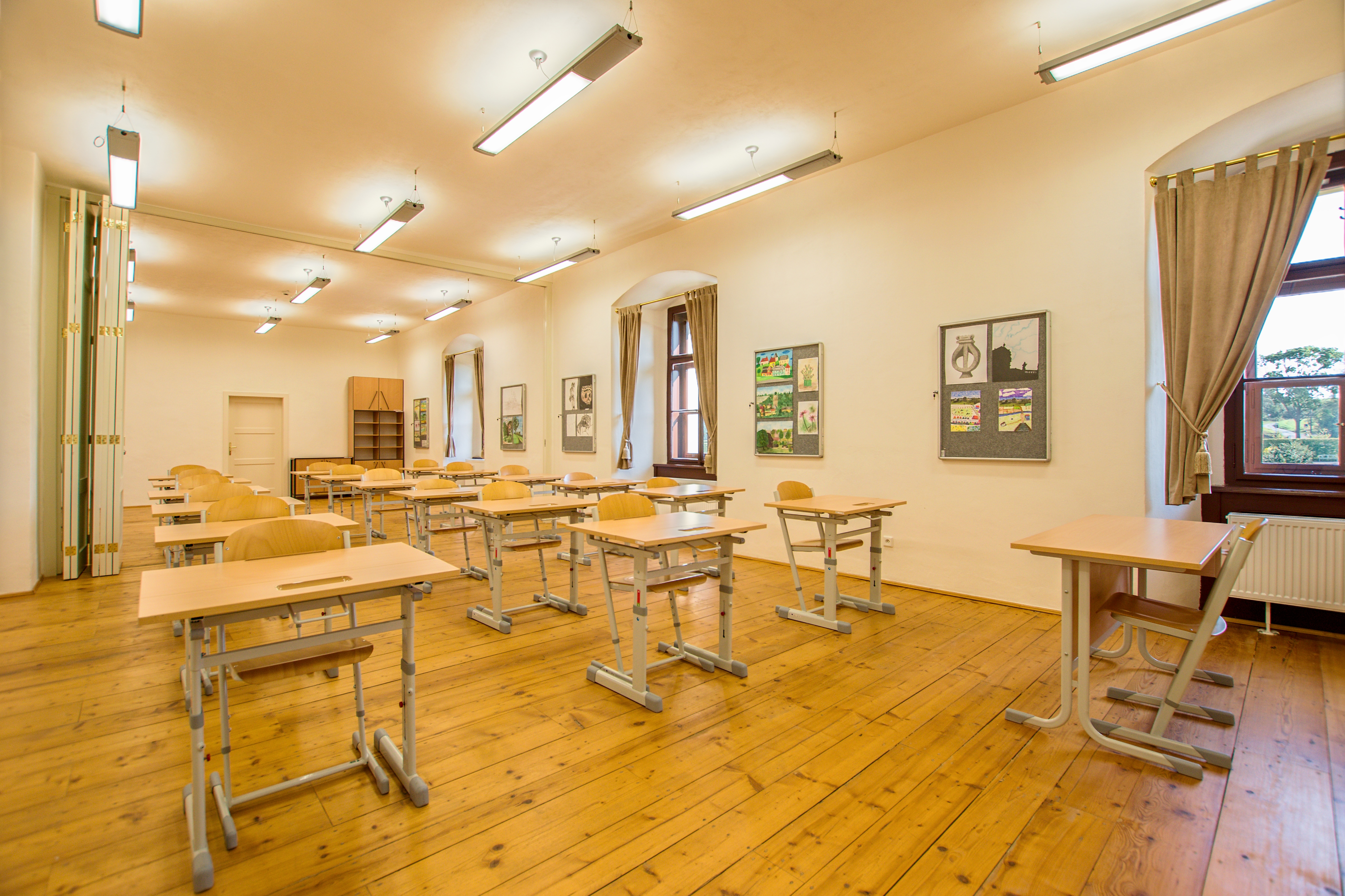 Na Vaše přání můžeme v učebně zajistit dataprojektor, plátno, ozvučení, malířské či keramické stojany a ruční lis na linoryt (satinýrka). V učebnách jsou psací tabule, jedna je mobilní (místo flipchartu).