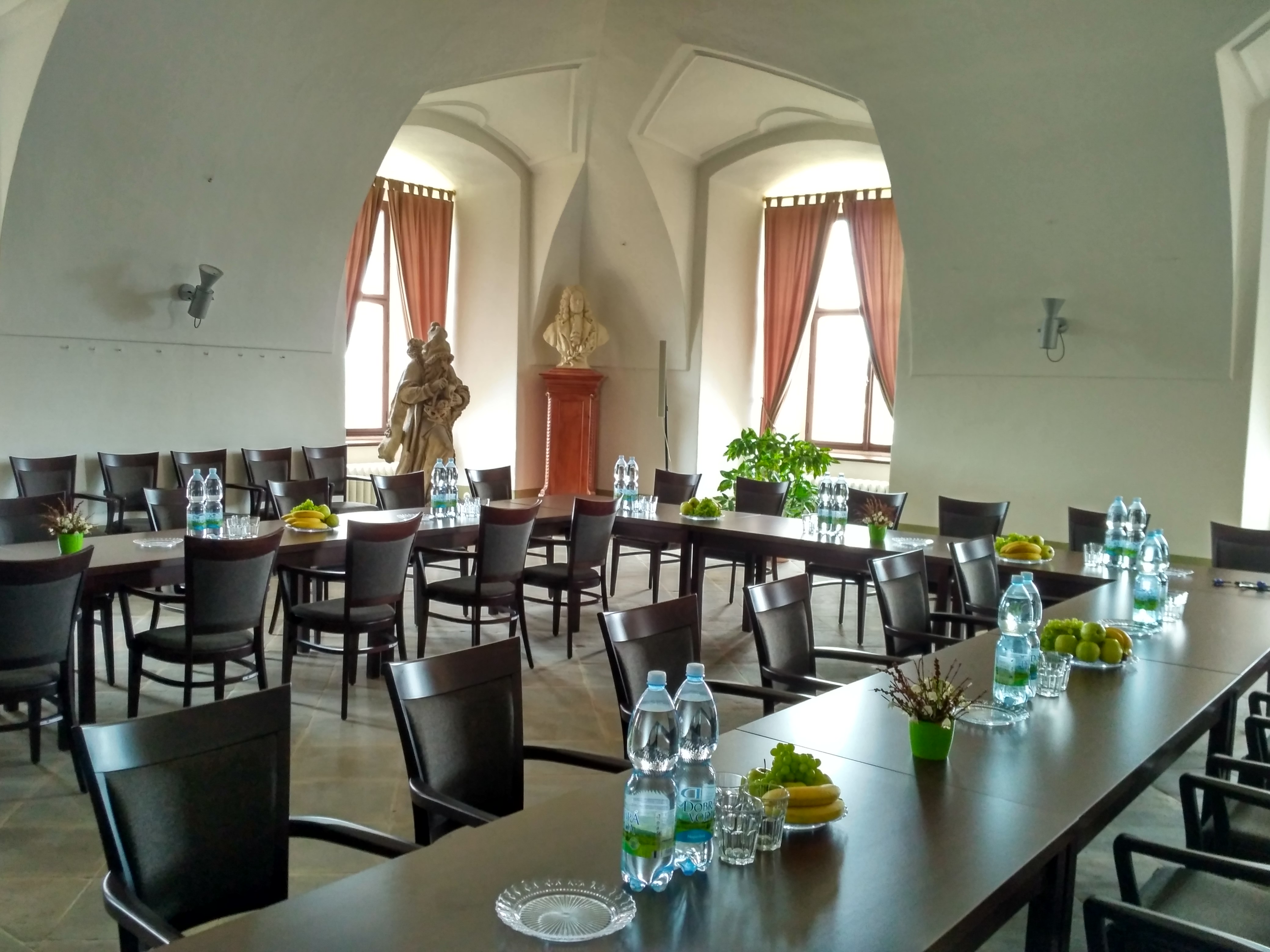 V sále můžeme připravit dataprojektor, plátno nebo ozvučení.