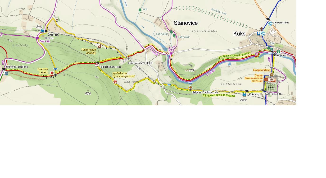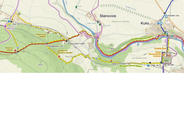 In the originally hunting ground, betlem was founded by the owner of the nearby Kuks, Count Franz Anton von Sporck. This happened after 1725, when the joint plan of the Kuks lord and the Jesuits from nearby Žireč to establish the Stations of the Cross from the Jesuit residence to the New Forest was rejected in Vienna. Sporck then decided to insult the dilatory Jesuits with the sculptures, which were supposed to show the Žireč fathers how lukewarm they were in their piety.