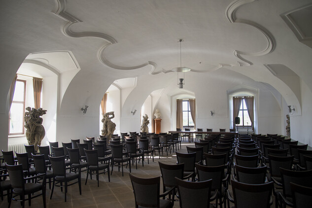 In the courtyard of the hospital you will also find a theater with a capacity of approximately 60 people. There is a stage, a stepped auditorium and two small cloakrooms.